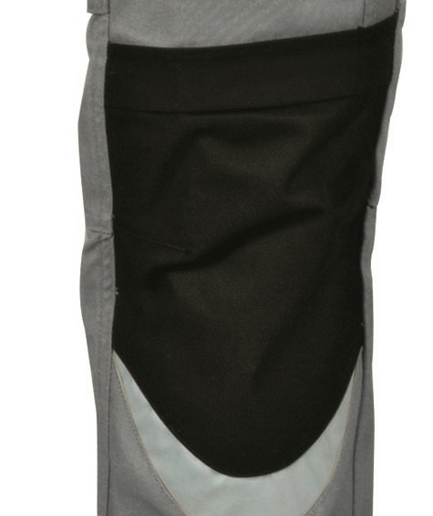 Pantalone Carpenter Cofra grigio/nero con profili riflettenti, 4 ampie tasche anteriori, doppia tasca posteriore, passante portamartello, rinforzi ginocchia, tasca laterale, tasca portametro, tasche esterne porta chiodi, tasche per ginocchiere con posizione regolabile, vita regolabile, zip.