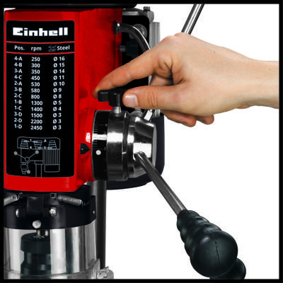 Grazie al trapano a colonna TC-BD 630 di Einhell è possibile effettuare fori esatti e precisi della dimensione desiderata in pezzi da lavorare di metallo o legno. Il trapano a colonna TC-BC 630 fornisce il corretto numero di giri per ogni materiale grazie alla regolazione su 12 posizioni. Il robusto mandrino a cremagliera da 1,5 a 16 millimetri è adatto per eseguire fori di ogni dimensione necessaria. Inoltre, il cono morse è abbinato a un attacco MK2 e di conseguenza garantisce ancor più flessibilità. L’arresto di profondità facilmente regolabile consente di eseguire forature perfette e veloci anche in serie. Il trapano a colonna è inoltre estremamente versatile grazie al suo piano a forare regolabile in altezza, inclinabile e ribaltabile. Il mandrino con cuscinetto a sfera è concepito per garantire un esercizio prolungato nel massimo del comfort. La maniglia gommata nel volantino a croce consente un dosaggio della forza preciso e un’impugnatura morbida. La sicurezza dell’utente è garantita dalla protezione antitrucioli ripiegabile e dall’interruttore di accensione/spegnimento con azionamento a tensione zero. Nella dotazione è già compresa una morsa per il fissaggio del pezzo da lavorare.